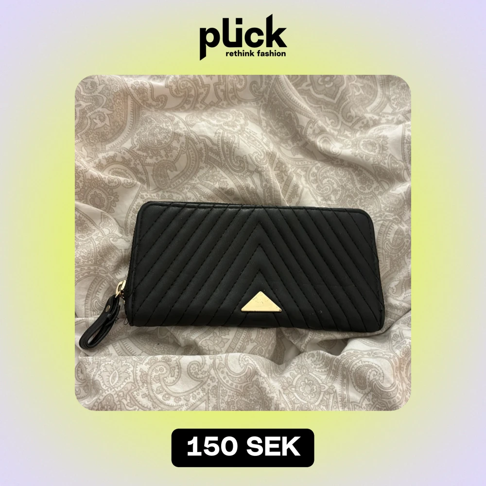 Snygg svart plånbok i quiltad design med dragkedja. Den har flera fack för kort och en praktisk dragkedja i guld för mynt. Perfekt för att hålla ordning på dina saker med stil!