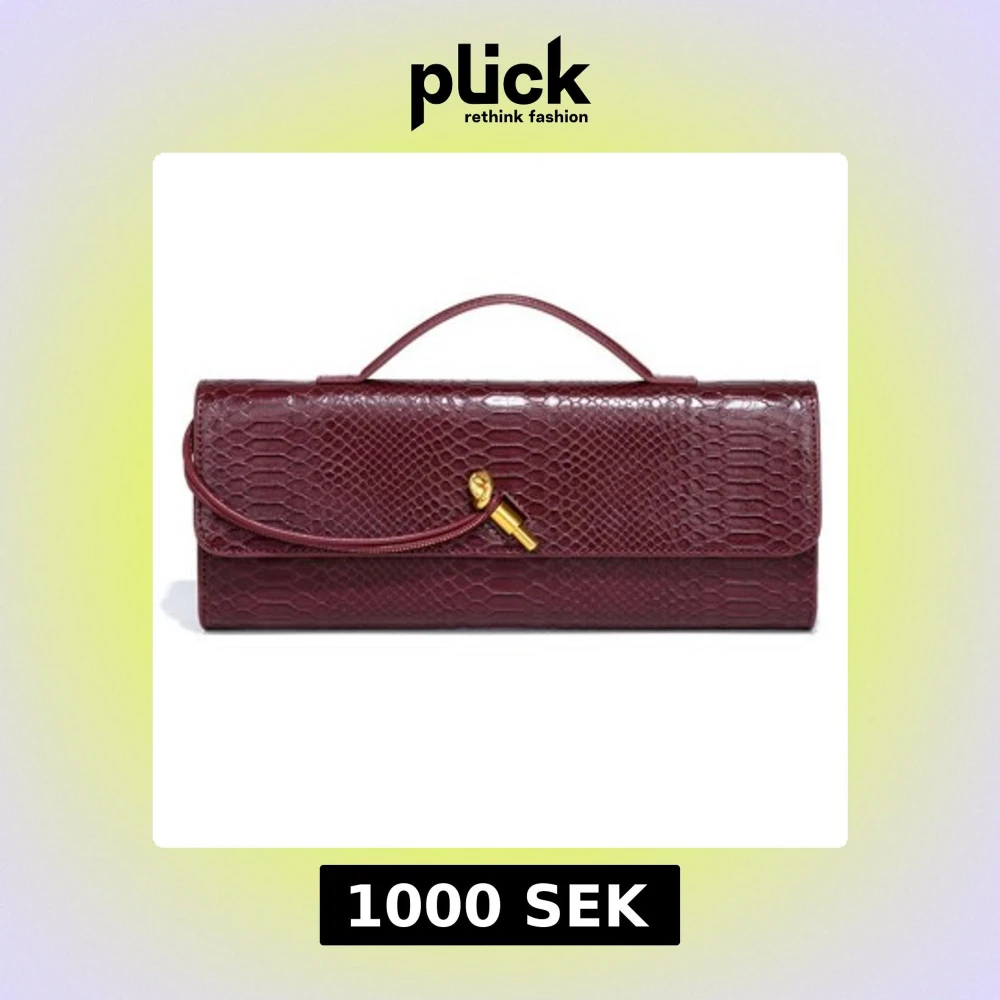 (Finns även 6 olika färger:)Snygg vinröd kuvertväska med reptilmönster och guldfärgad detalj på framsidan. Väskan har ett smidigt handtag upptill och är tillverkad i skinn med en lyxig finish. Perfekt för att lyfta din outfit med en cool och elegant touch.