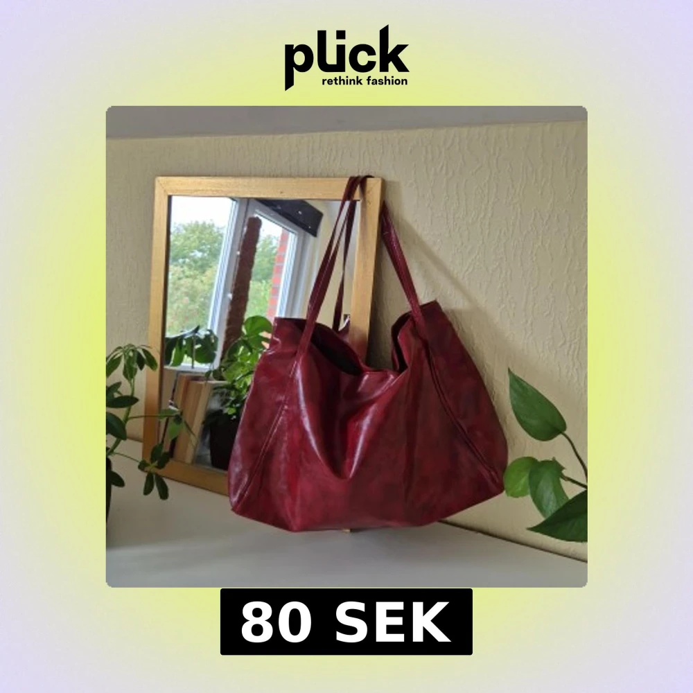 Rymlig vinröd axelväska i skinnimitation med långa smala axelband. Väskan har en mjuk, slouchy form och minimalistisk design utan synliga loggor eller detaljer. Supersnygg höstväska🍂Mindre skavank på en rem, visas på bild