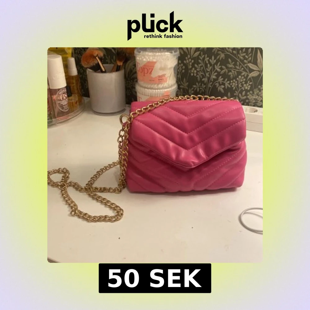 Säljer en snygg quiltad axelväska i stark rosa med guldfärgad kedja som axelrem.
