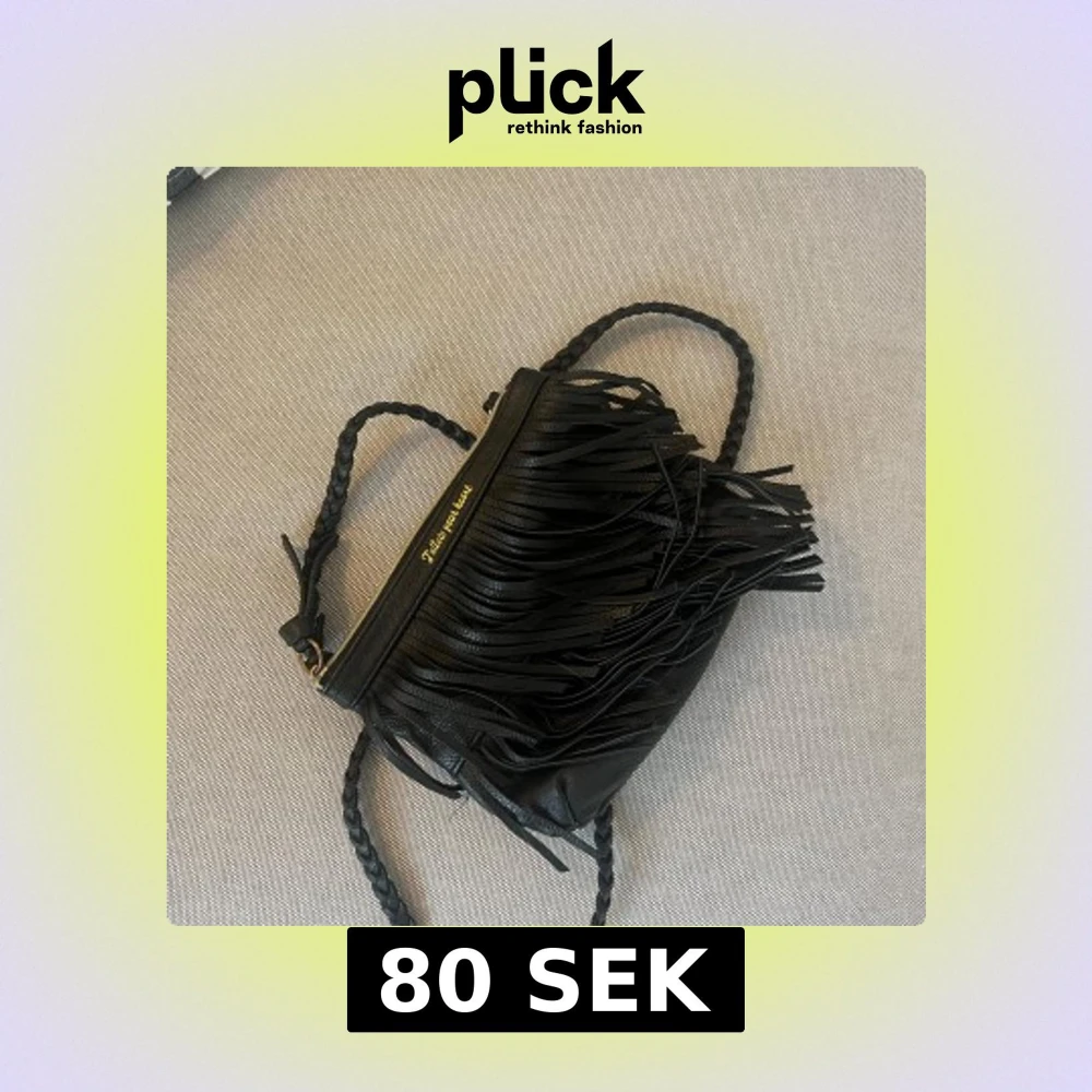 Svart axelväska i skinnimitation med flätat axelband och långa fransar framtill. Väskan har guldfärgad text 'Follow your heart' vid dragkedjan och en smidig storlek som passar till det mesta. Perfekt för dig som gillar detaljer och vill sticka ut lite extra.