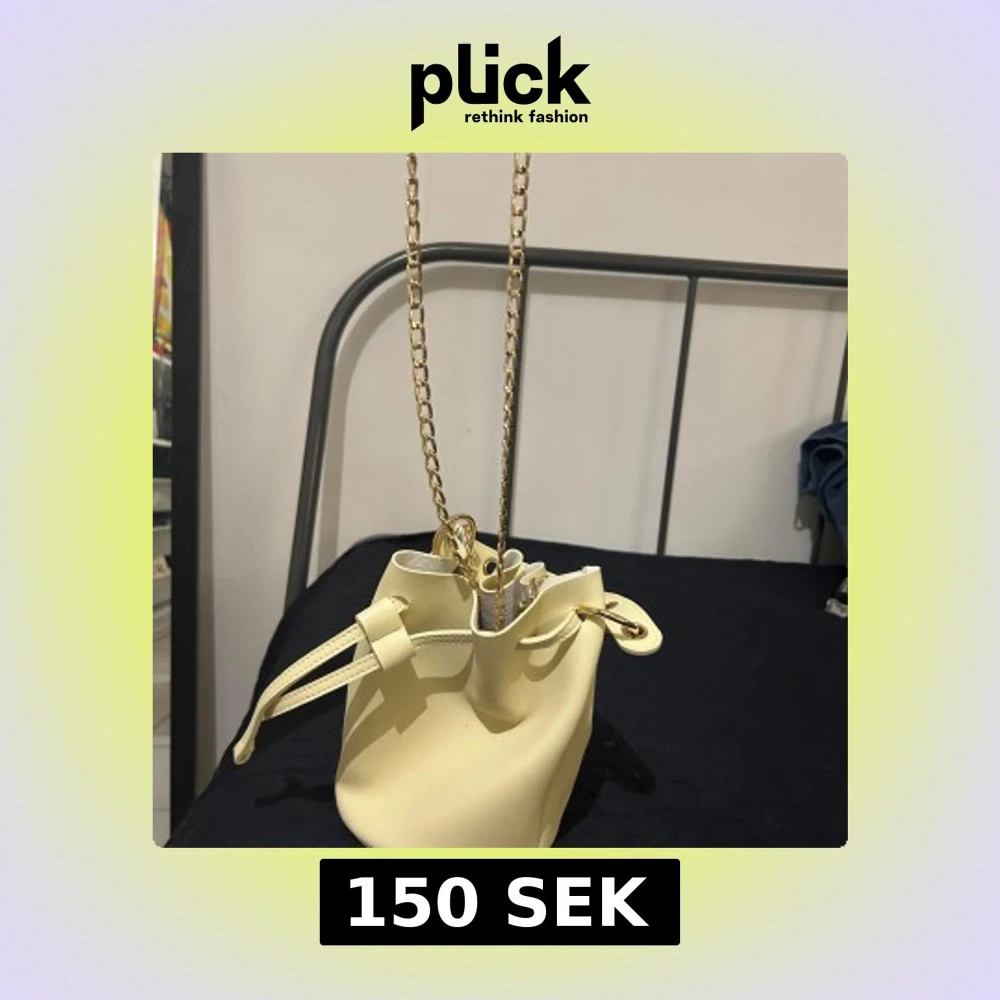 Snygg beige axelväska med guldfärgad kedja och justerbar dragsko. Perfekt för att ge en stilren touch till din outfit. Väskan har en modern design med metallringar och är lätt att bära.