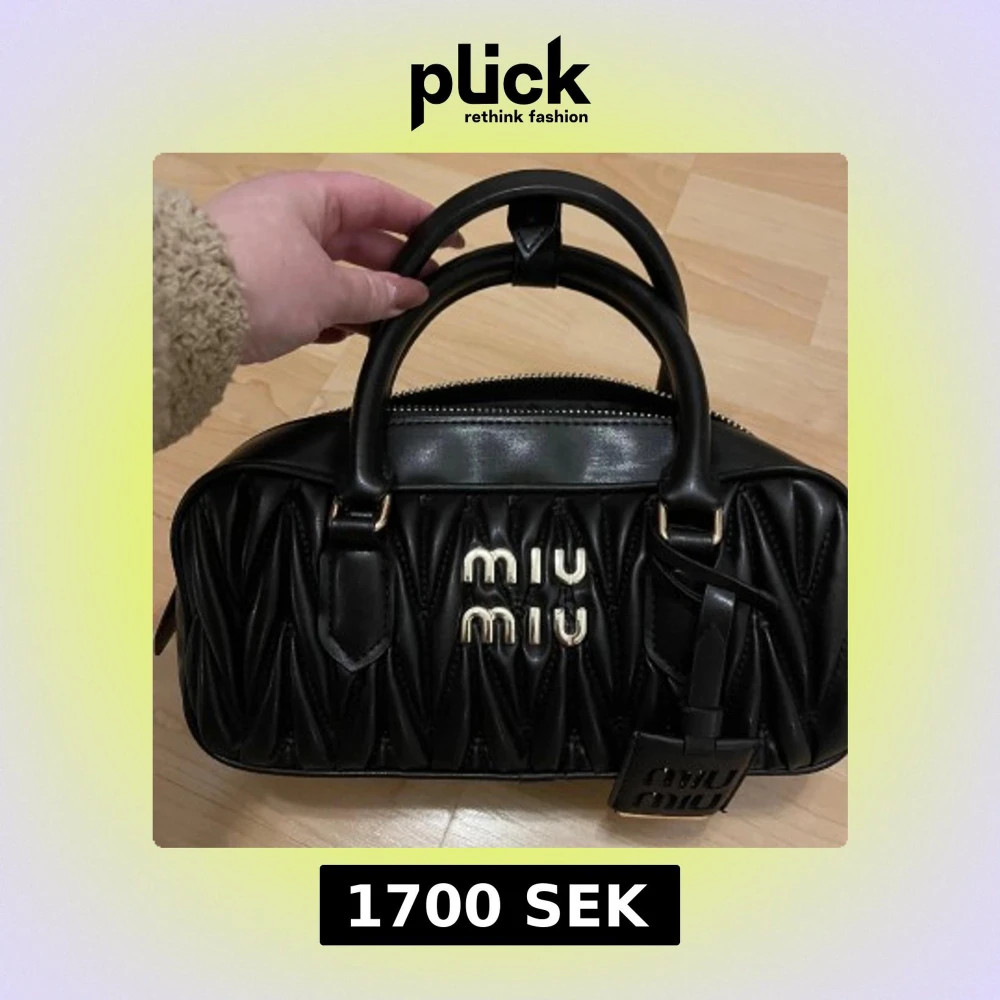 Snygg svart handväska från Miu Miu i quiltat skinn med guldiga detaljer och logotyp framtill. Väskan har två handtag, dragkedja upptill och metallfötter undertill. Perfekt för dig som vill ha en lyxig och trendig accessoar med exklusiv känsla.