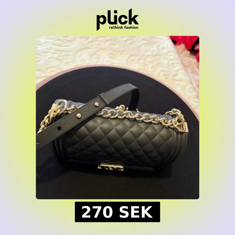 Säljer en svart quiltad axelväska med kedjerem i guld och läder. Klassisk rektangulär form med elegant lås framtill och lyxig känsla. Perfekt för dig som vill ha en tidlös och trendig accessoar.