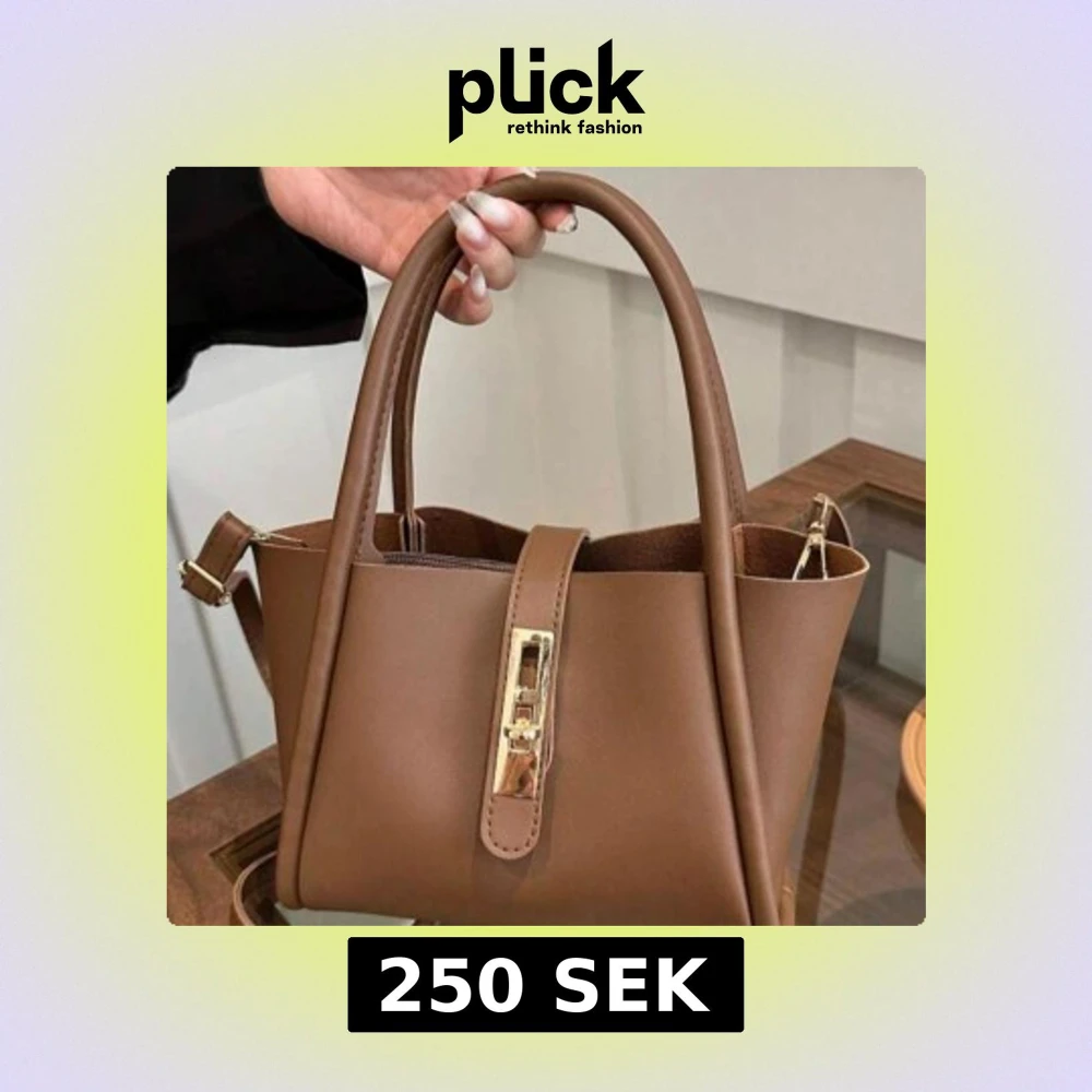 Snygg brun handväska i skinnimitation med stilrena gulddetaljer och justerbar axelrem. Perfekt storlek för mobil, plånbok och smink.💕💕