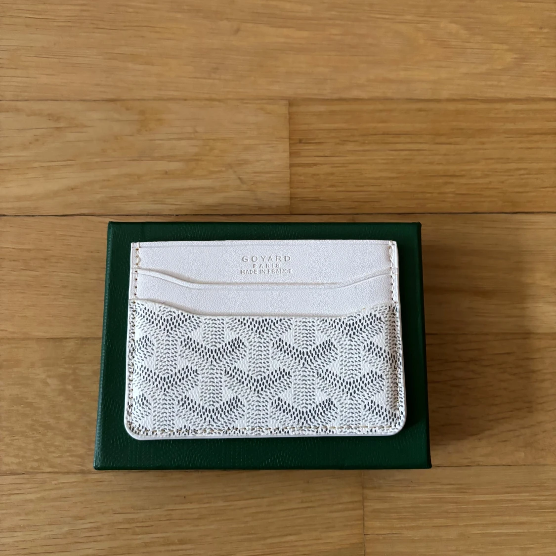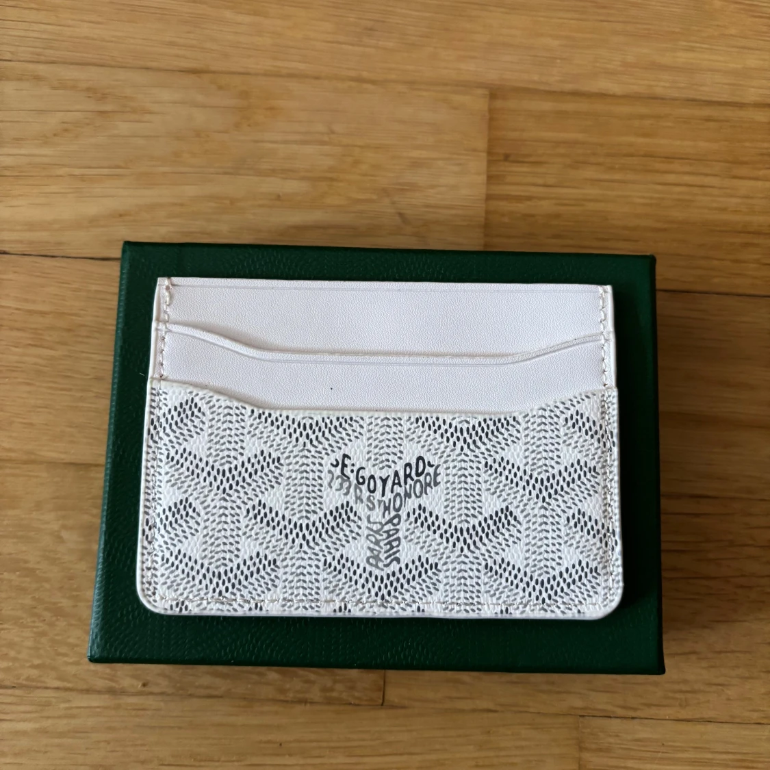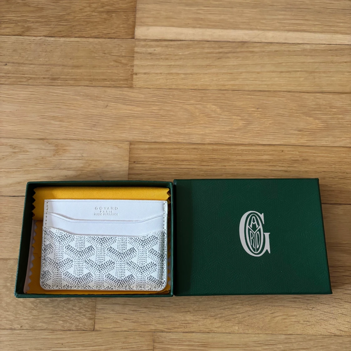 Supersnyggt vitt kortfodral från Goy4rd med deras ikoniska mönster och logga. Fodralet har flera kortfack och är gjort i exklusivt skinn med ett diskret, stilrent print. Perfekt för dig som vill ha något både lyxigt och praktiskt i fickan.
