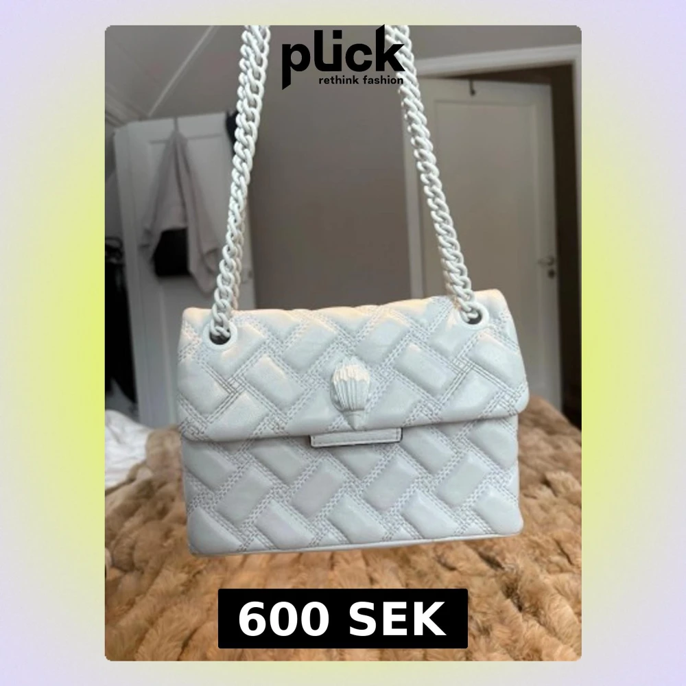 Snygg helvit väska från Kurt Geiger. Finns täcken på användning i form av missfärgningar (se bilderna). Jag tycker att detta bara syns på nära håll och inget man tänker på annars. Det är den lilla storleken.