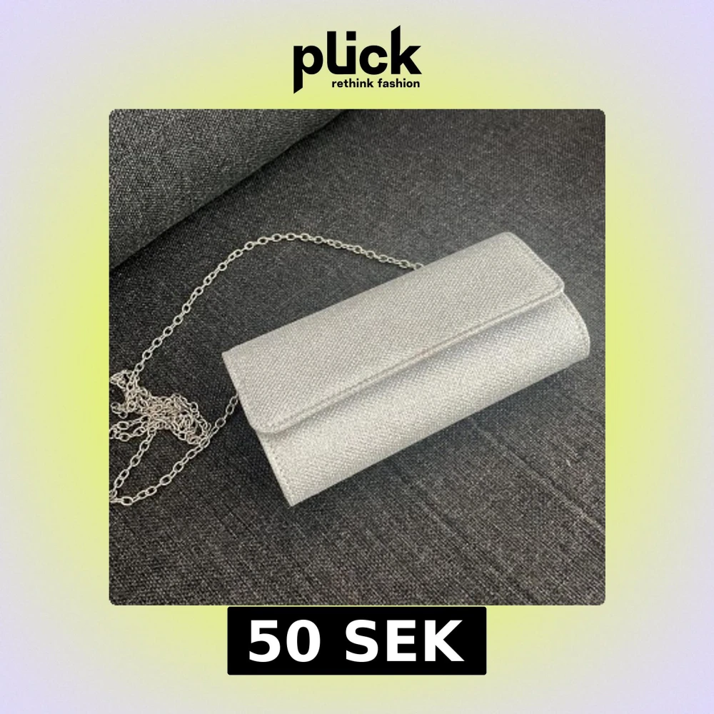 Snygg silverfärgad kuvertväska med glittrig yta och metallkedja som axelrem. Väskan har ett stilrent, rektangulärt format och stängs med magnetlås. Perfekt för att lyfta din outfit med lite extra bling.