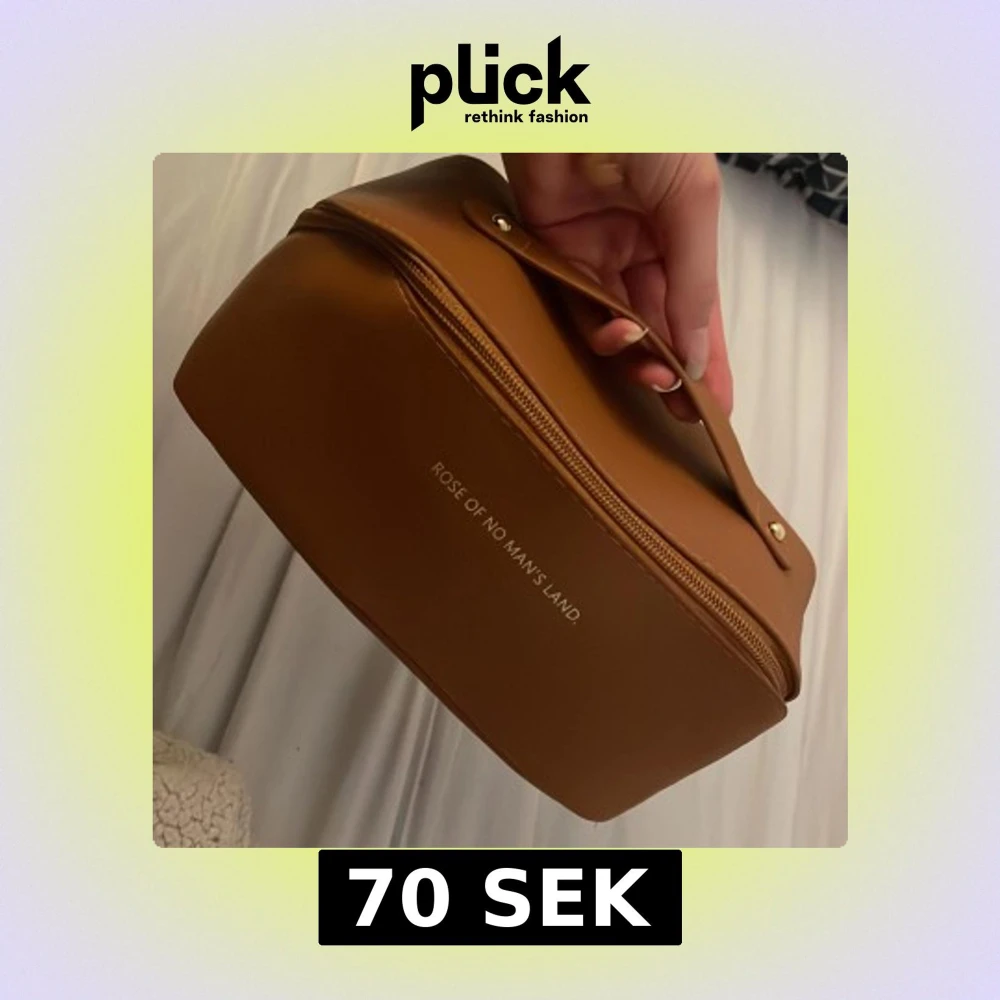 Snygg brun necessär i skinnimitation från Rose of No Man's Land. Väskan har ett stilrent, avlångt format med dragkedja och praktiskt handtag. Insidan är fodrad i ljus satin och har flera fack och en innerficka med dragkedja för smart organisering och smink. 💄👜