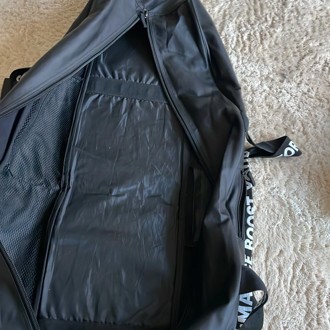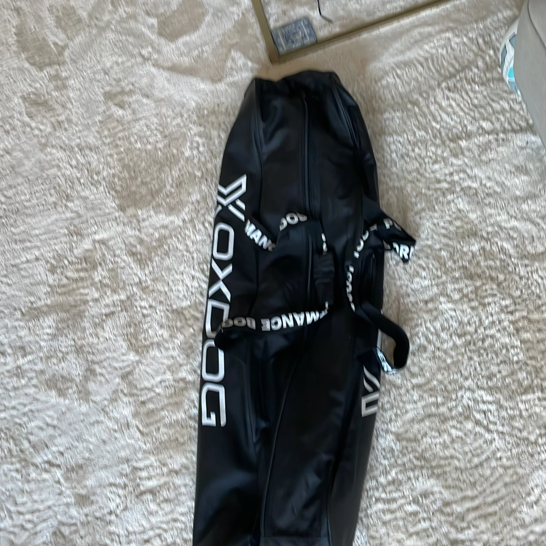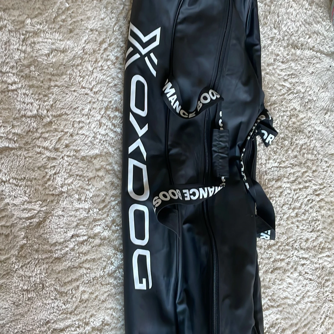 Stor svart sportväska från Oxdog med vit logga och text på både väskan och handtagen. Väskan är avlång och har dragkedja längs ovansidan, perfekt för att bära sportutrustning. Tillverkad i slitstark syntet med praktiska bärhandtag.