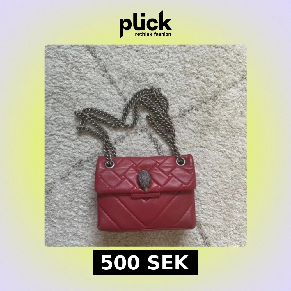 Säljer en snygg röd axelväska från Kurt Geiger i quiltat skinn. Väskan har en cool silverfärgad kedjerem och ikoniskt fågelhuvud som spänne. Perfekt storlek för det viktigaste och ger en edgy vibe till din outfit.