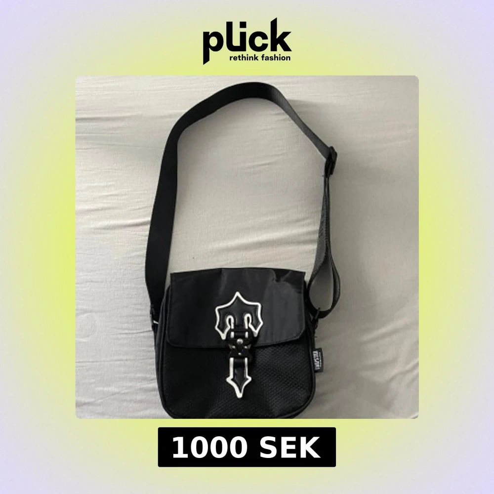 SÄLJER: Unik axelväska – streetstyle med edge | 1000 kr Letar du efter den perfekta väskan som sticker ut utan att skrika? Den här svarta axelväskan med detaljer i silver har exakt rätt blandning av stil, funktion och attityd. Designen är exklusiv, med en unik låsdetalj som påminner om en rustning – för dig som inte kompromissar med din stil. Ej äkta ! Ej använd och man kan skjustera väskans size.