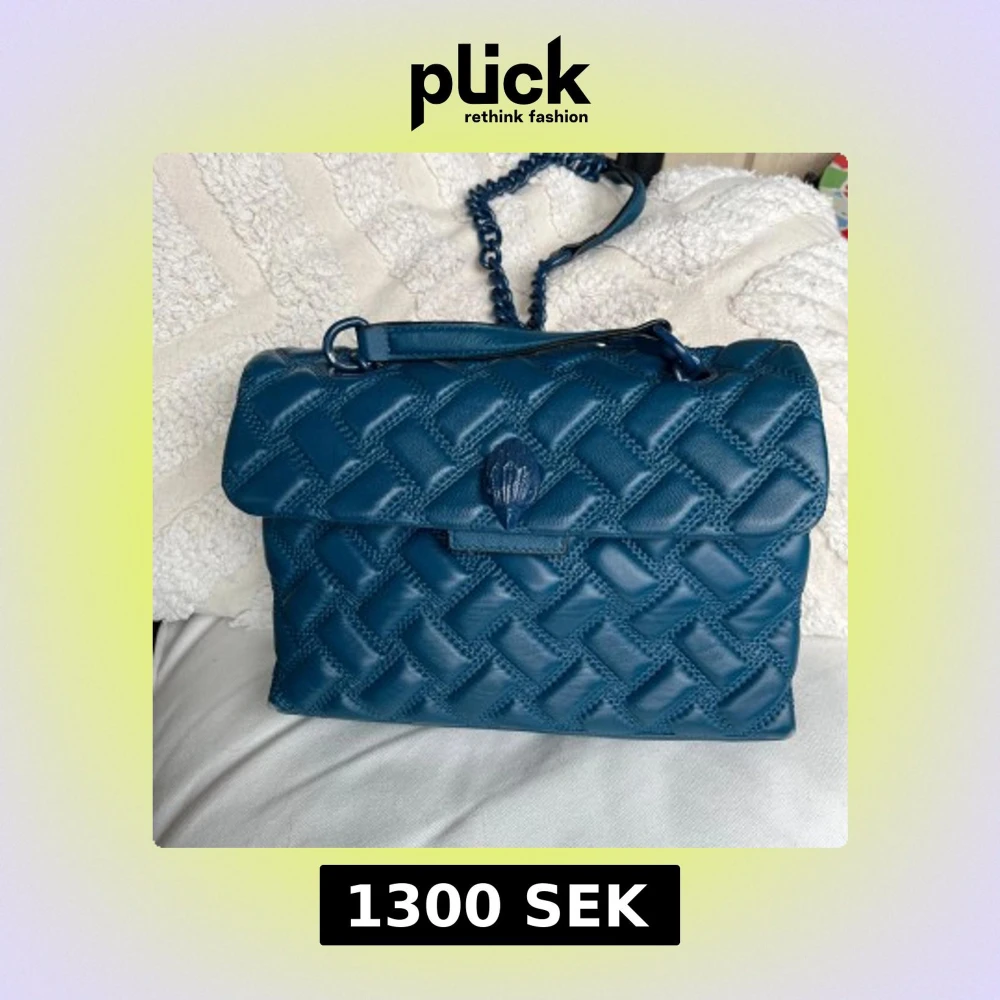 Snygg blå axelväska från Kurt Geiger i äkta skinn med quiltad framsida och kedjerem. Väskan har lock med dekorativ detalj och rymligt innerfack med logomönstrat foder. Perfekt för dig som vill ha en stilren men ändå unik väska.