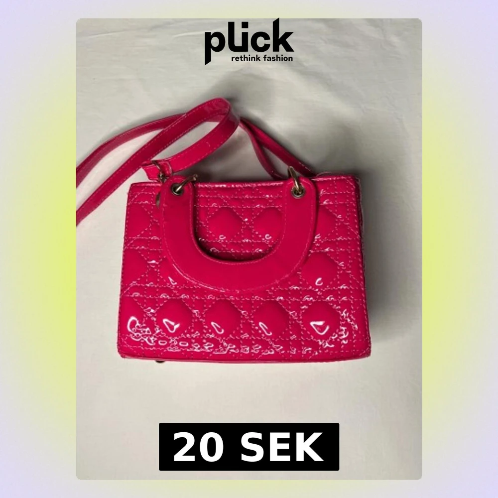 Snygg liten handväska i glansigt rosa syntetmaterial med quiltad design och guldfärgade metalldetaljer. Väskan har både handtag och justerbar axelrem samt dragkedja upptill. Insidan är fodrad med blommigt tyg. Perfekt för dig som gillar färg och vill sticka ut.