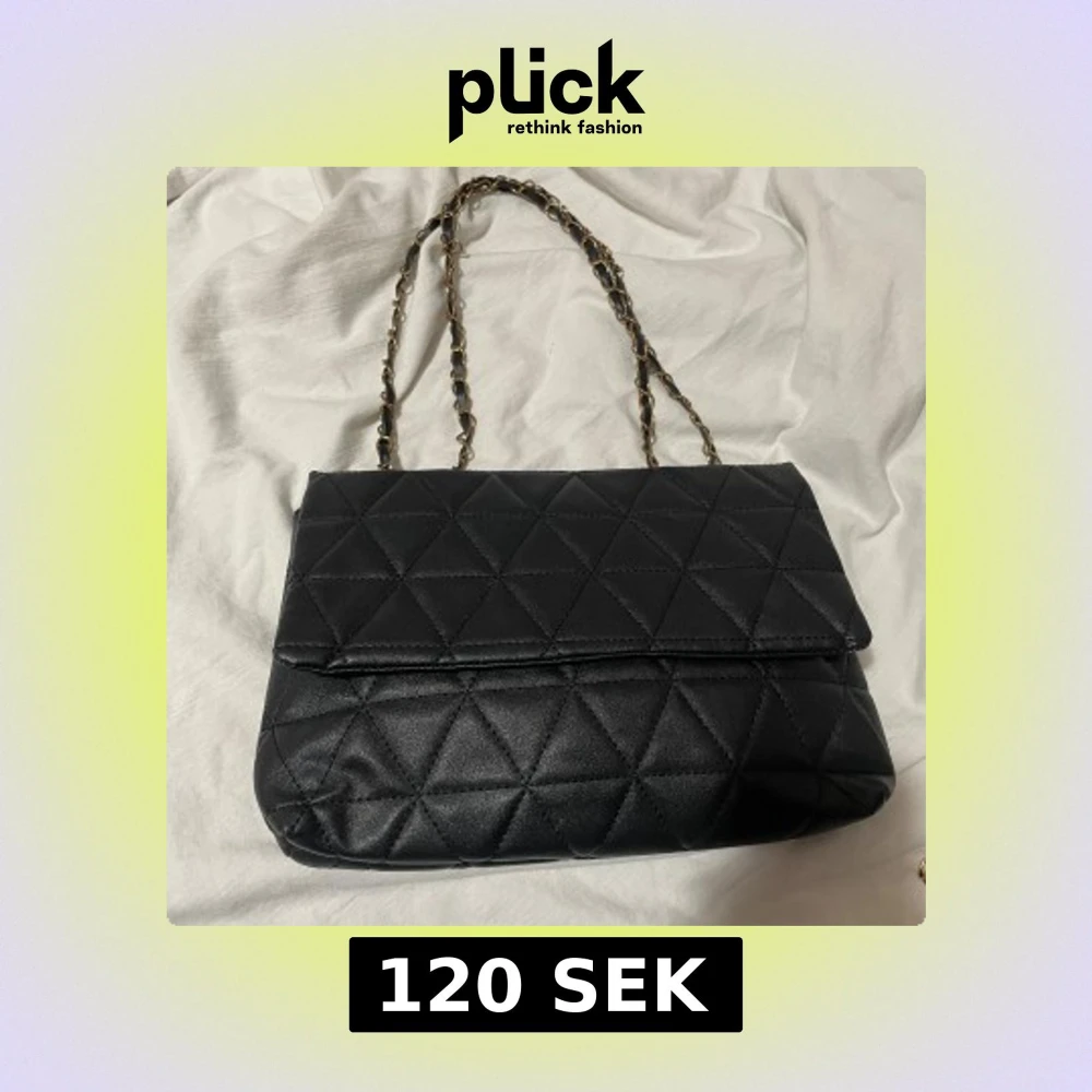 Snygg svart quiltad axelväska med kedjehandtag. Perfekt för att ge en elegant touch till din outfit. Väskan har en stilren design och är tillverkad i syntetmaterial.