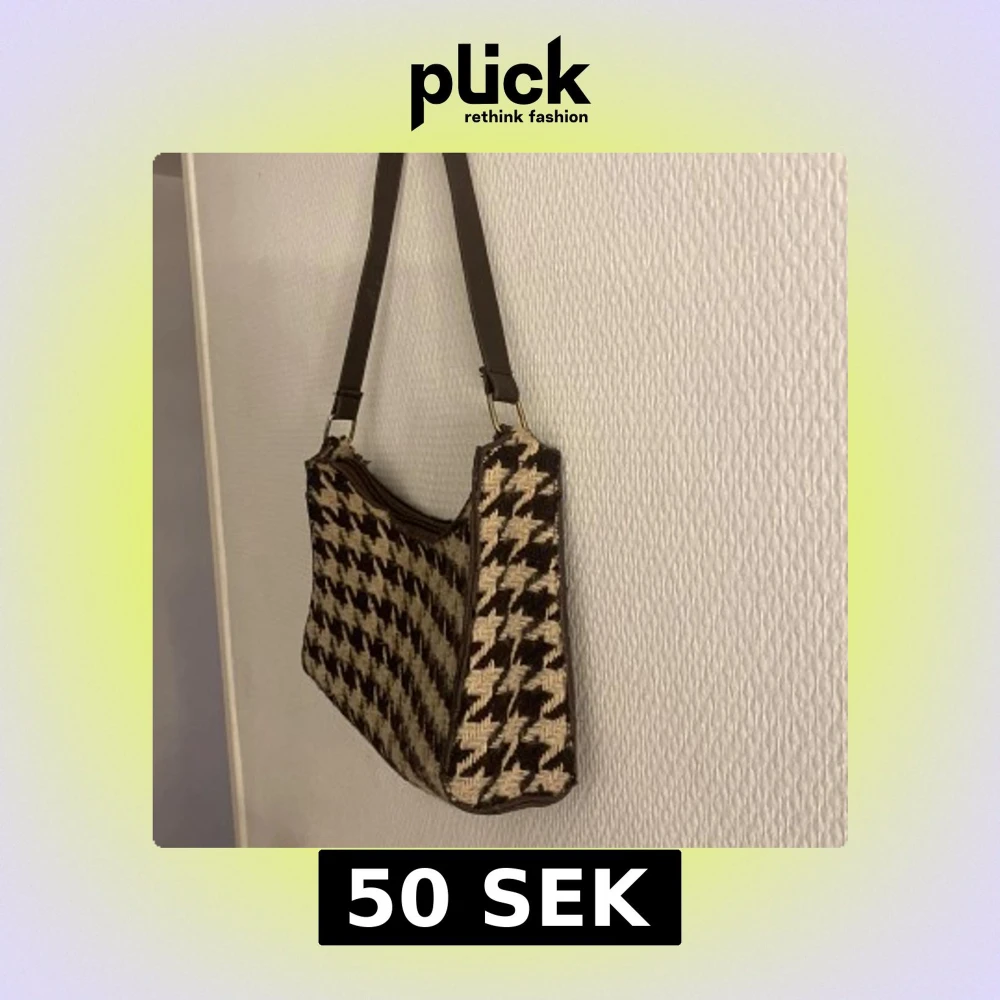Snygg axelväska med ett klassiskt rutigt mönster i brunt och beige. Väskan har en praktisk dragkedja och en justerbar axelrem. Perfekt för att ge din outfit en stilfull touch.