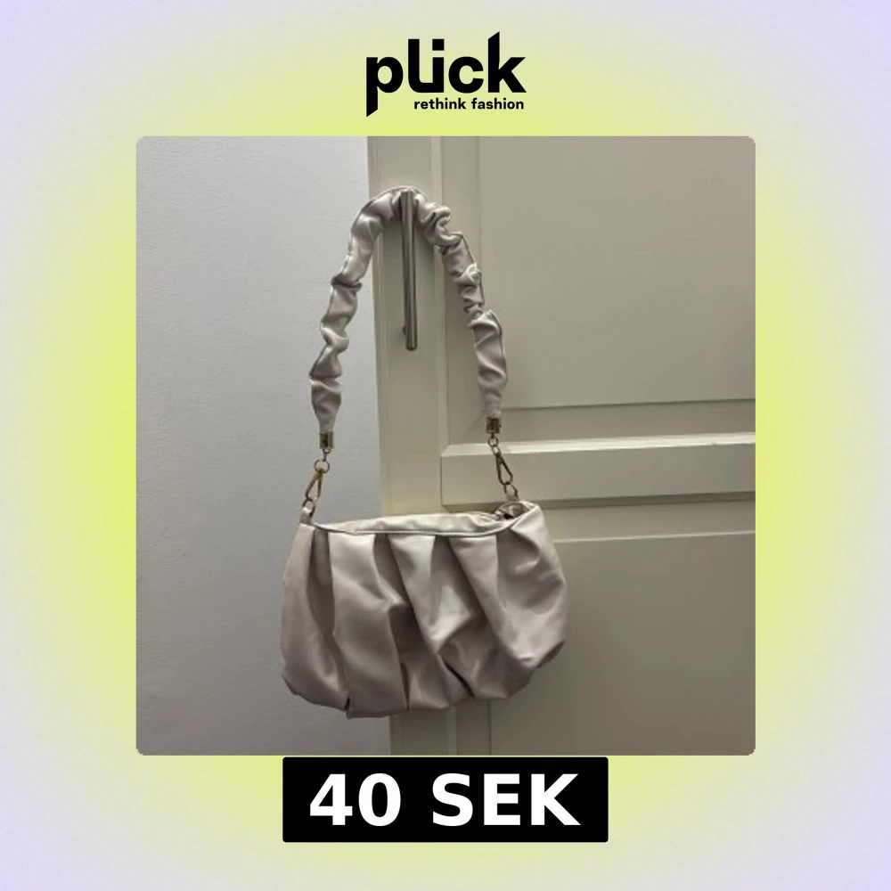 Säljer en superfin vit axelväska i syntetmaterial med rynkad axelrem och veckad design. Väskan har dragkedja upptill och ett rymligt foder inuti. Perfekt storlek för det viktigaste och ger en trendig touch till din outfit.