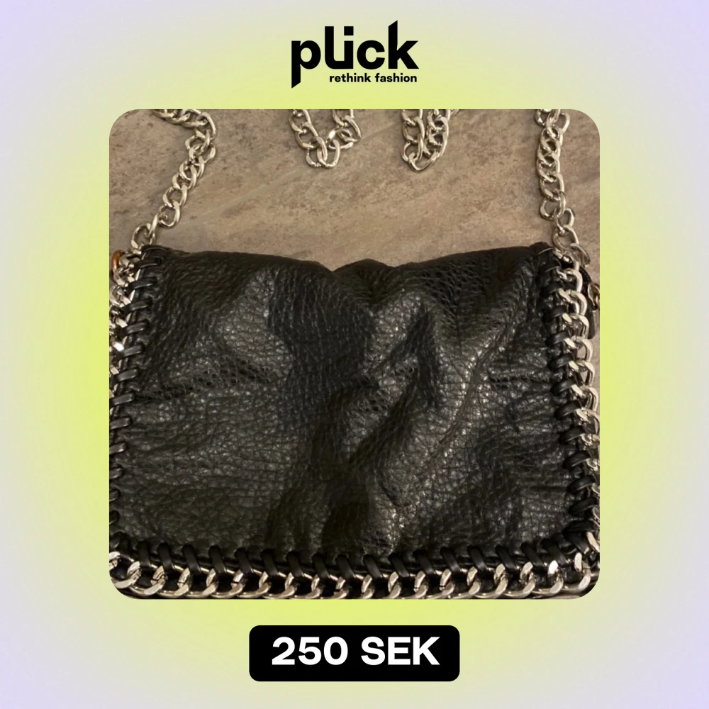 Snygg svart axelväska från Tiamo i skinn med coola kedjedetaljer. Väskan har en dragkedja på baksidan och en kedja som axelrem. Perfekt för en kväll ute eller en dag på stan! NYTT RPIS 400