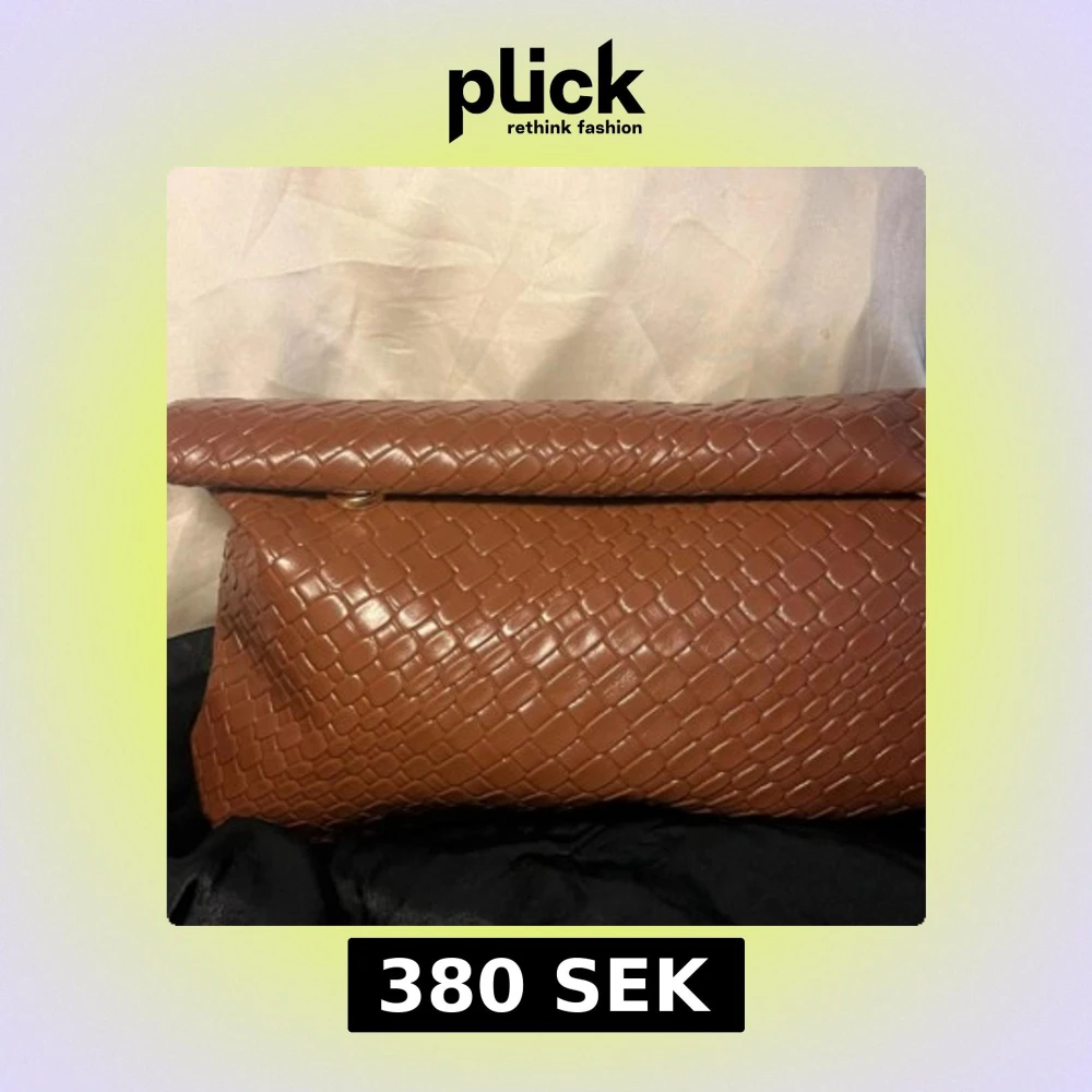 Snygg brun kuvertväska med flätad struktur och magnetlås. Väskan har en stilren design och är tillverkad i skinnliknande material. Perfekt storlek för att bära det viktigaste och ger en trendig touch till din outfit. Längd 28,5 cm 🩷Bredd 5,5 cm 💞 Höjd 16,5 cm 💗