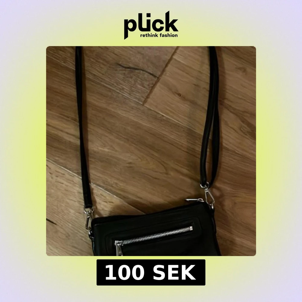 Snygg svart axelvÀska med lÄng rem och silverfÀrgad dragkedja framtill. VÀskan har en stilren och enkel design som passar till mÄnga olika outfits. Perfekt storlek för att fÄ med det viktigaste och lÀtt att bÀra över axeln.