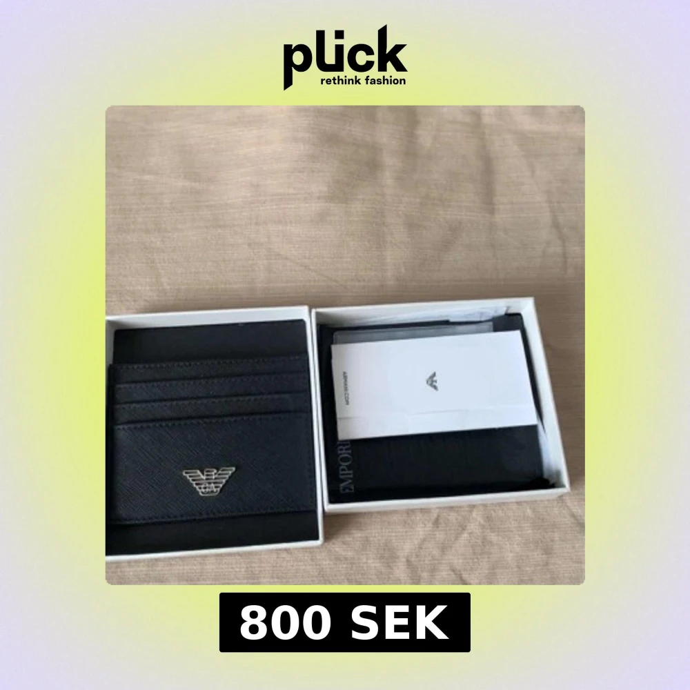 Snygg svart plånbok från Emporio Armani i stilren design med silverfärgad logga framtill. Plånboken har flera kortfack och är tillverkad i ett strukturerat skinnmaterial. Perfekt för dig som vill ha en smidig och exklusiv accessoar i fickan.