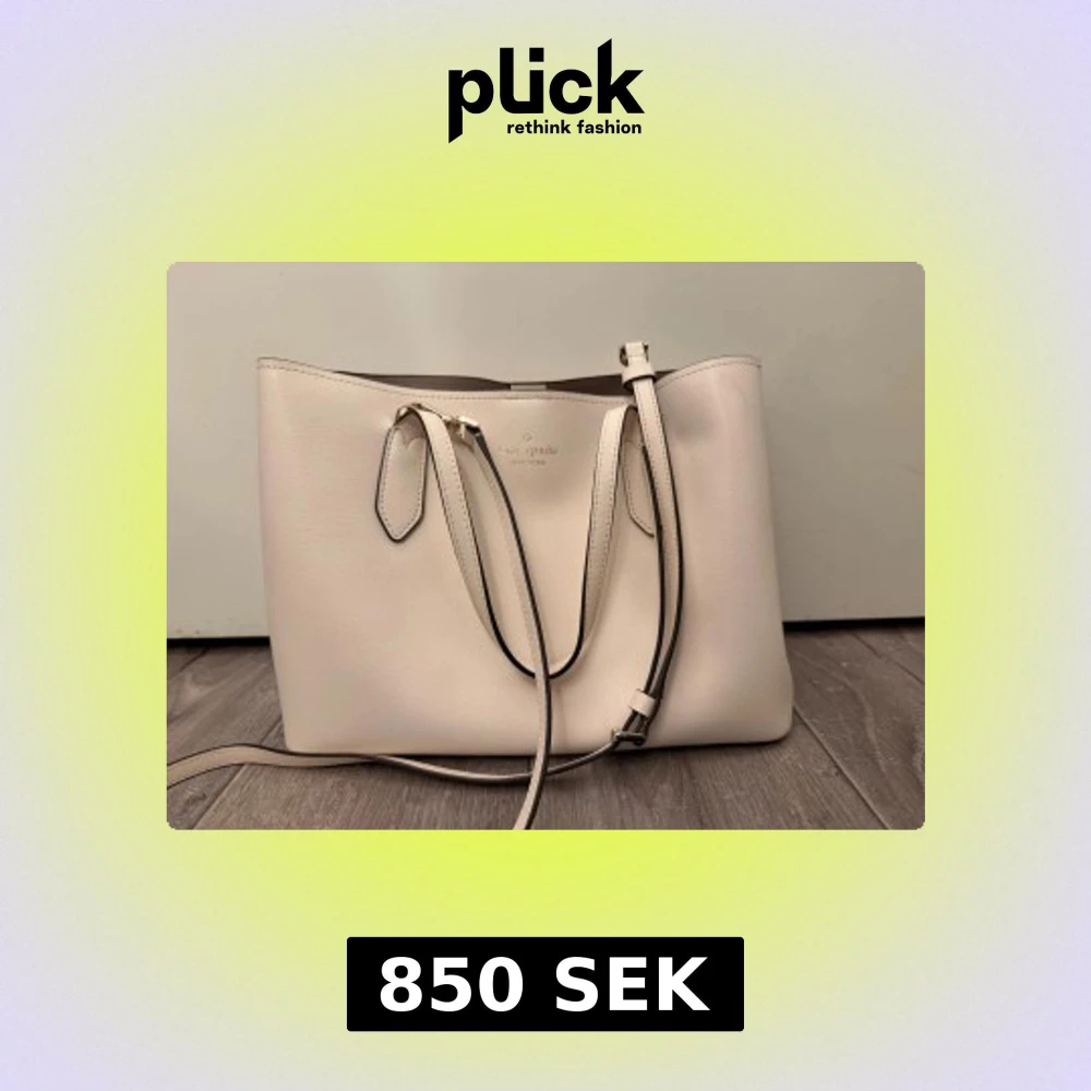 Snygg beige axelväska från Kate Spade med stilren design och praktiska handtag. Väskan har ett stort huvudfack och en innerficka med dragkedja. Tillverkad i slätt skinn med ljusa detaljer och diskret logga framtill.