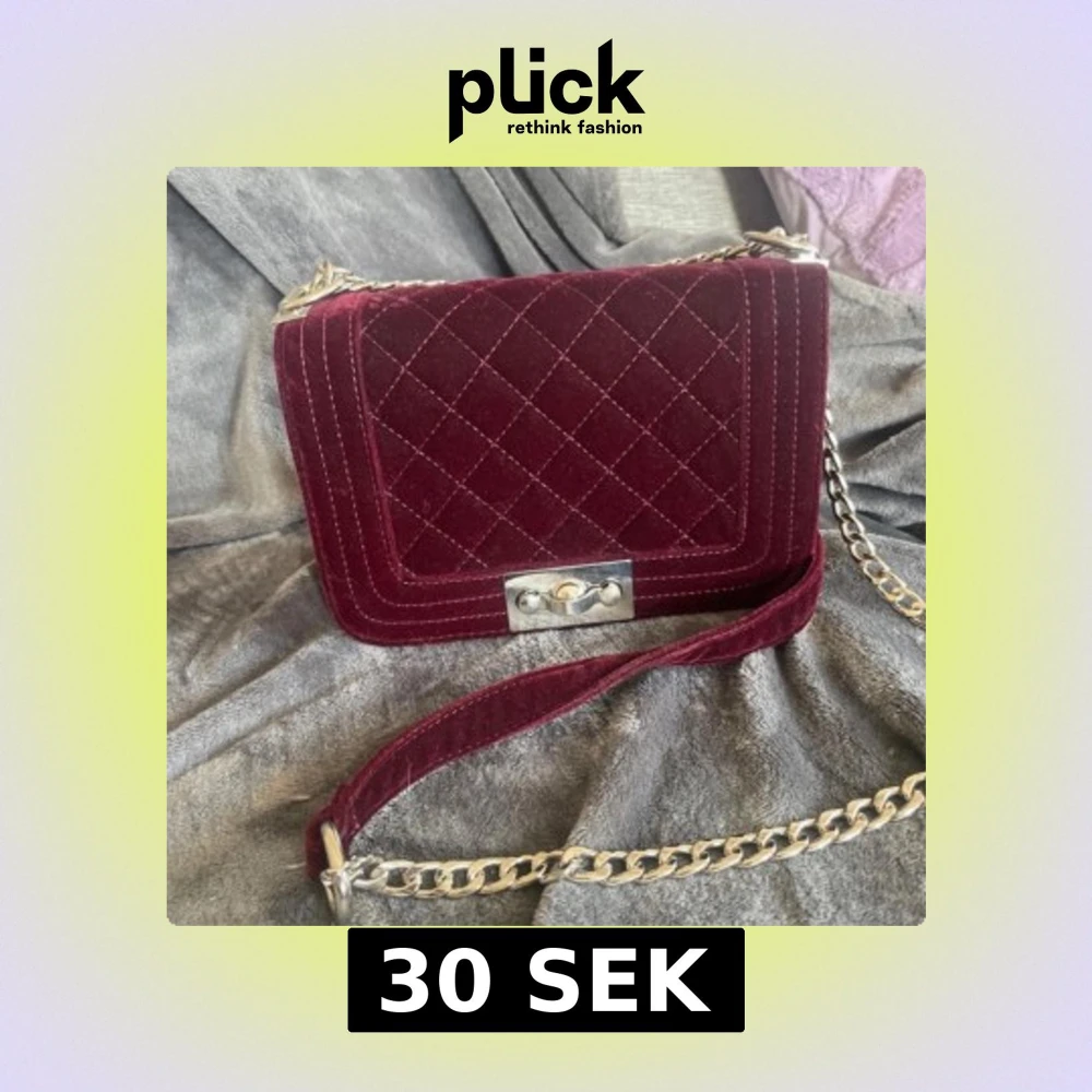Vinröd axelväska i mjuk sammet med silverfärgad kedja. Litet fack med dragkedja på insidan. Sparsamt använd men har slitage vid låset och på sidan. Mått 22x15x9 30kr+frakt