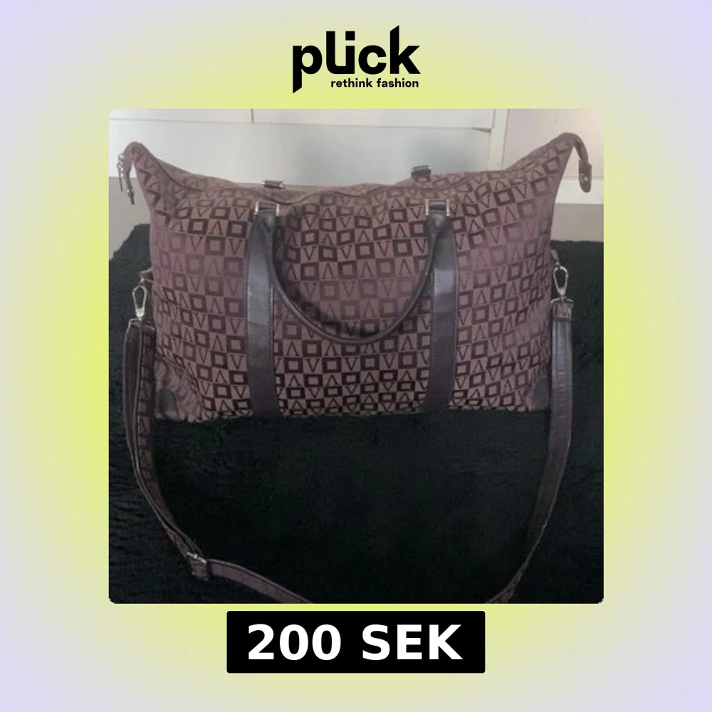 Stor brun weekendbag från Vezzano med geometriskt mönster i svart. Väskan har både handtag och justerbar axelrem samt dragkedja upptill. Bra skick med rymligt huvudfack och innerficka med dragkedja.