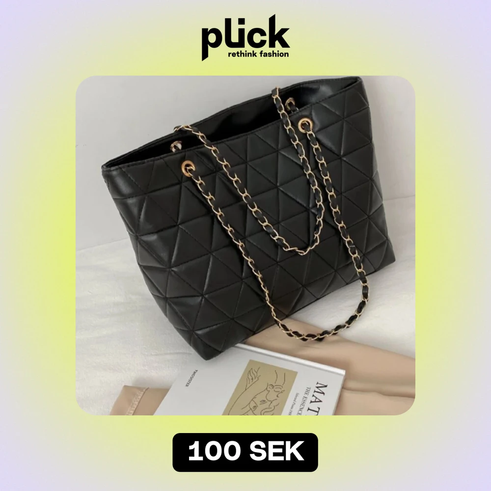 Snygg svart axelväska i quiltat mönster med kedjedetaljer på remmarna. Perfekt för både vardag och fest. Väskan har en stilren design och är rymlig nog för alla dina nödvändigheter.