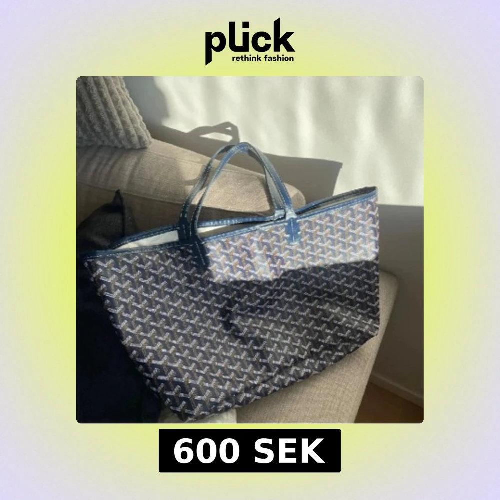 Säljer en stor och rymlig shoppingväska i blått med ikoniska mönster. Väskan har två handtag i blått och är perfekt för dig som vill ha plats med allt. Klassisk och stilren design med lyxig känsla.