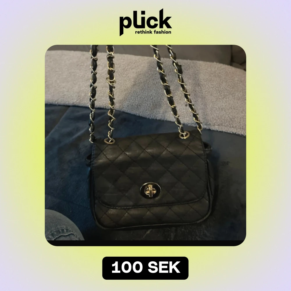 Snygg svart quiltad axelväska med kedjedetaljer på axelremmen och ett vridlås framtill. Perfekt för att ge en elegant touch till din outfit.