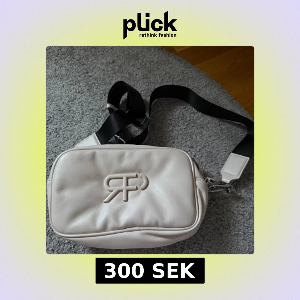 Snygg beige axelväska i skinnimitation från Rebecca Fredriksson med svart, bred justerbar axelrem. Väskan har ett stilrent RF-logo , dragkedja upptill och flera fack inuti för smart organisering. Perfekt storlek för det viktigaste du vill ha med dig.
