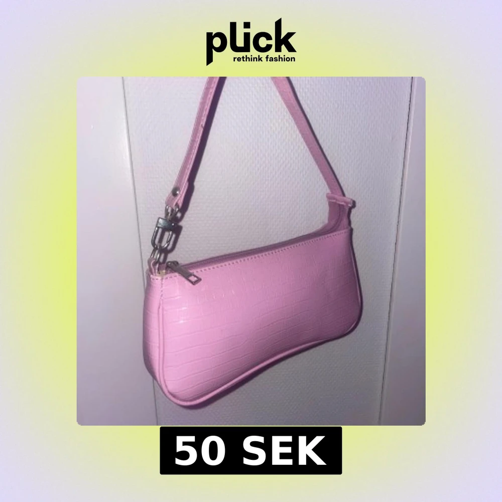 Säljer en ljusrosa axelväska med croco-mönster och dragkedja upptill. Väskan har en smal axelrem och är perfekt för att bära det viktigaste. Enkel men trendig design som passar till många outfits.