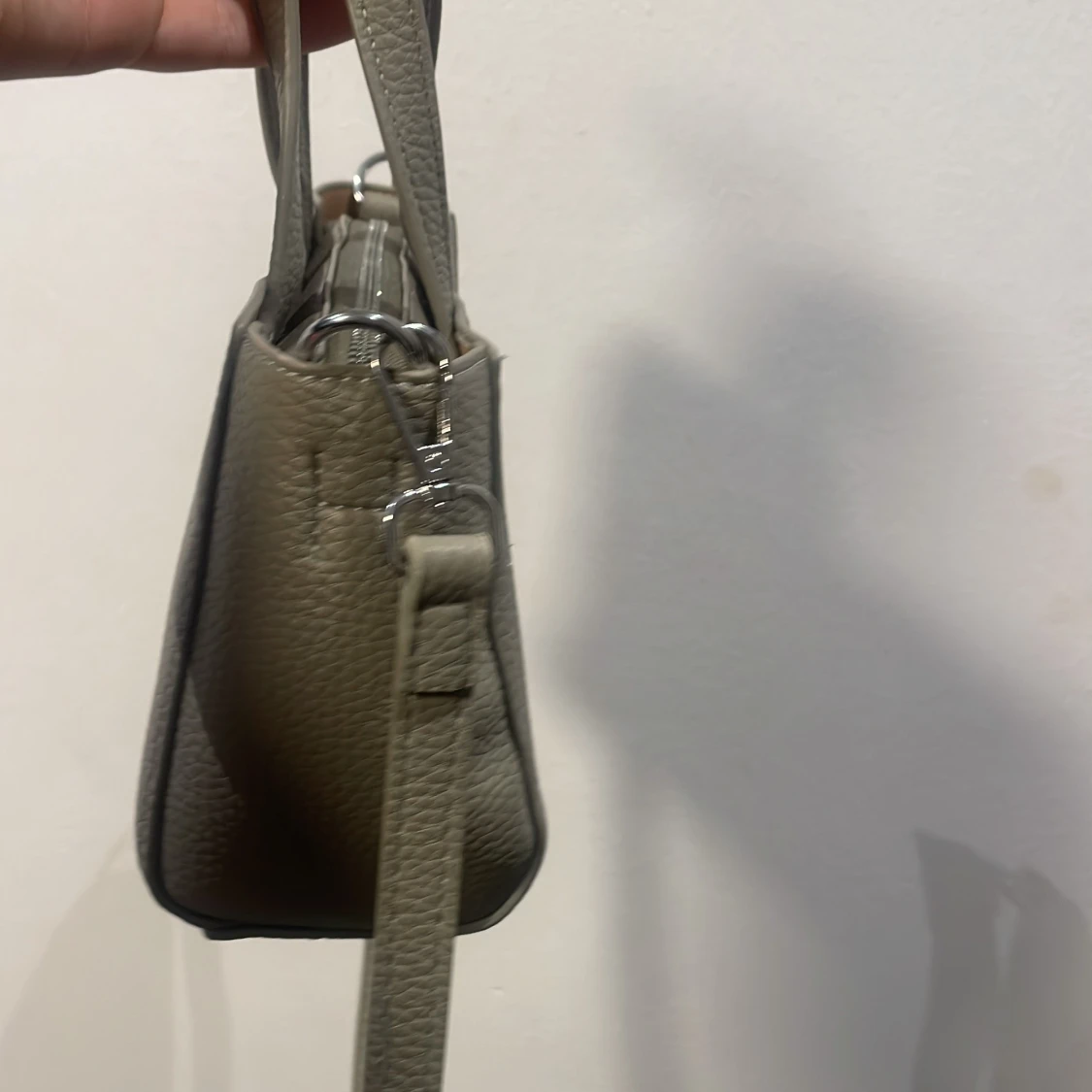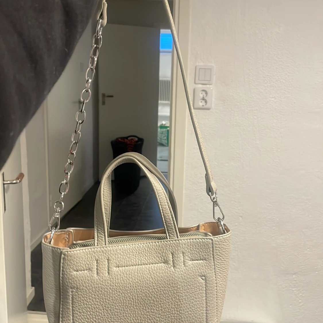 Snygg ljusgrå axelväska i strukturerat skinn med både handtag och avtagbar axelrem med kedjedetalj. Väskan har stilren design och dragkedja upptill. Perfekt storlek för det viktigaste och passar till många outfits.