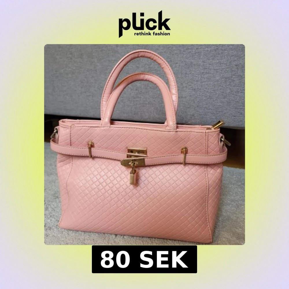 Säljer en snygg rosa handväska med guldiga metalldetaljer. Väskan har två handtag, dekorativt lås framtill och ett stilrent rutmönster. Perfekt för dig som vill ha en chic och trendig accessoar till din outfit. Axelrem tillkommer. Väskan är ej använd mycket alls, men litet slitage finns på ett av handtagen efter förvaring.