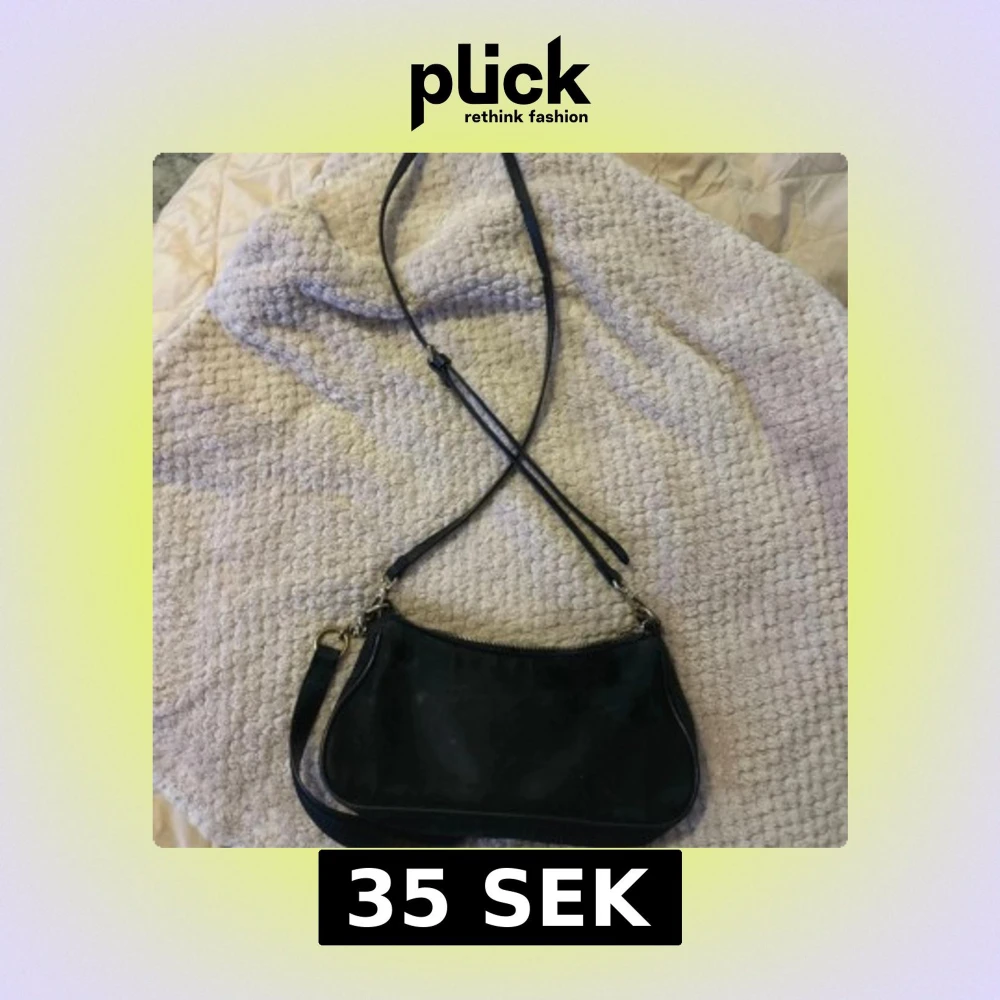 Stilren svart axelväska i skinn med justerbar rem och dragkedja upptill. Väskan har en mjukt rundad form och silverfärgade metalldetaljer. Perfekt storlek för det viktigaste och passar till många olika outfits.