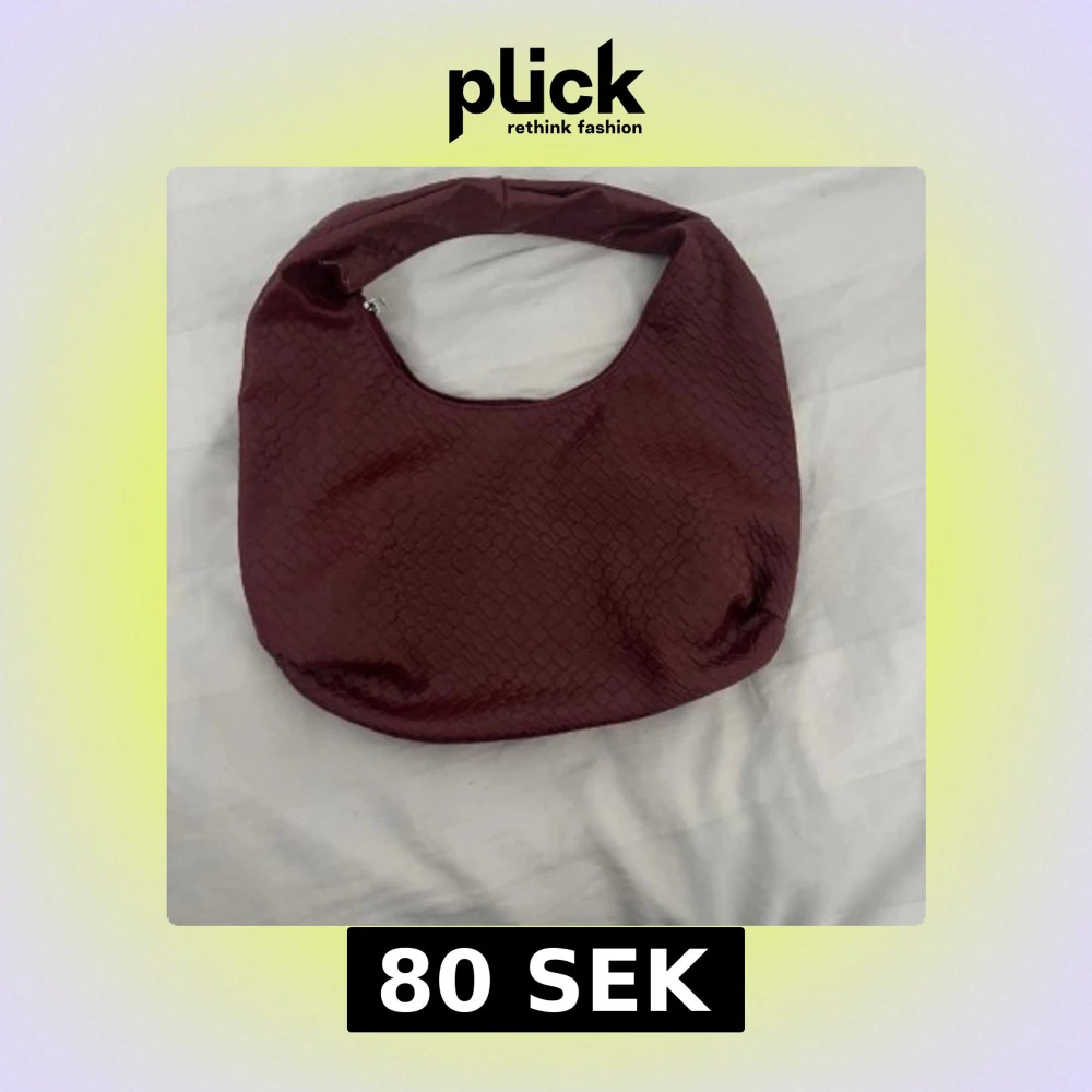 Vin röd väska, köpt på marknad i Italien. Säljs pga ej kommit till användning. Ny skick, utan prislapp. Pris kan kompromissas om. Perfekt fest väska eller om man ska gå på stan etc.
