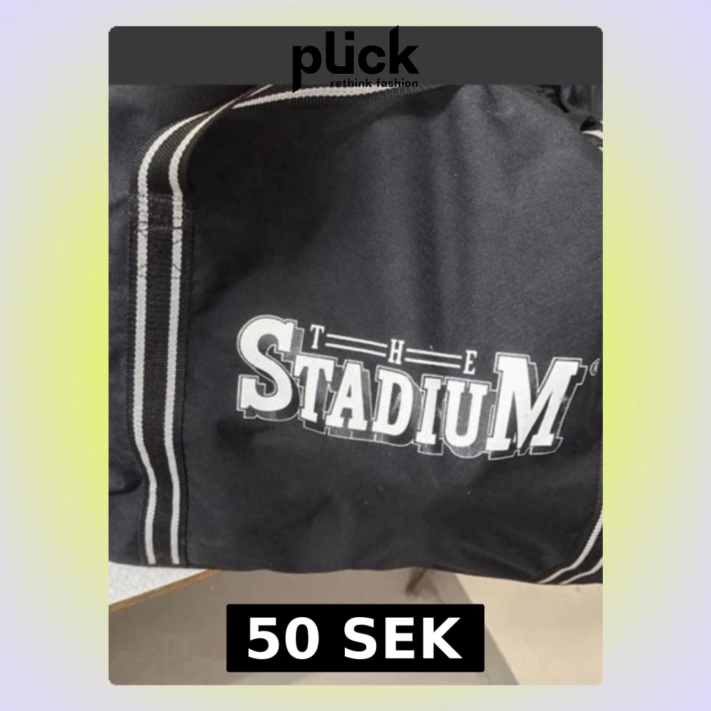 Svart väska från Stadium. Perfekt för träning eller resa. Knapparna på väskan har trillat nedantill, väskan håller nog ett tag till Höjd: cirka 58 cm, bredd: cirka 35 cm, längd cirka 70 cm