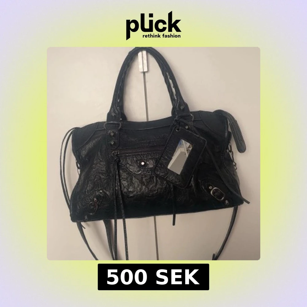 Cool svart handvĂ€ska med spegel och snygga metalldetaljer. Riktig pris 800kr , Men jag sĂ€ljer den för 500krđ©·Vi kan diskutera priset!