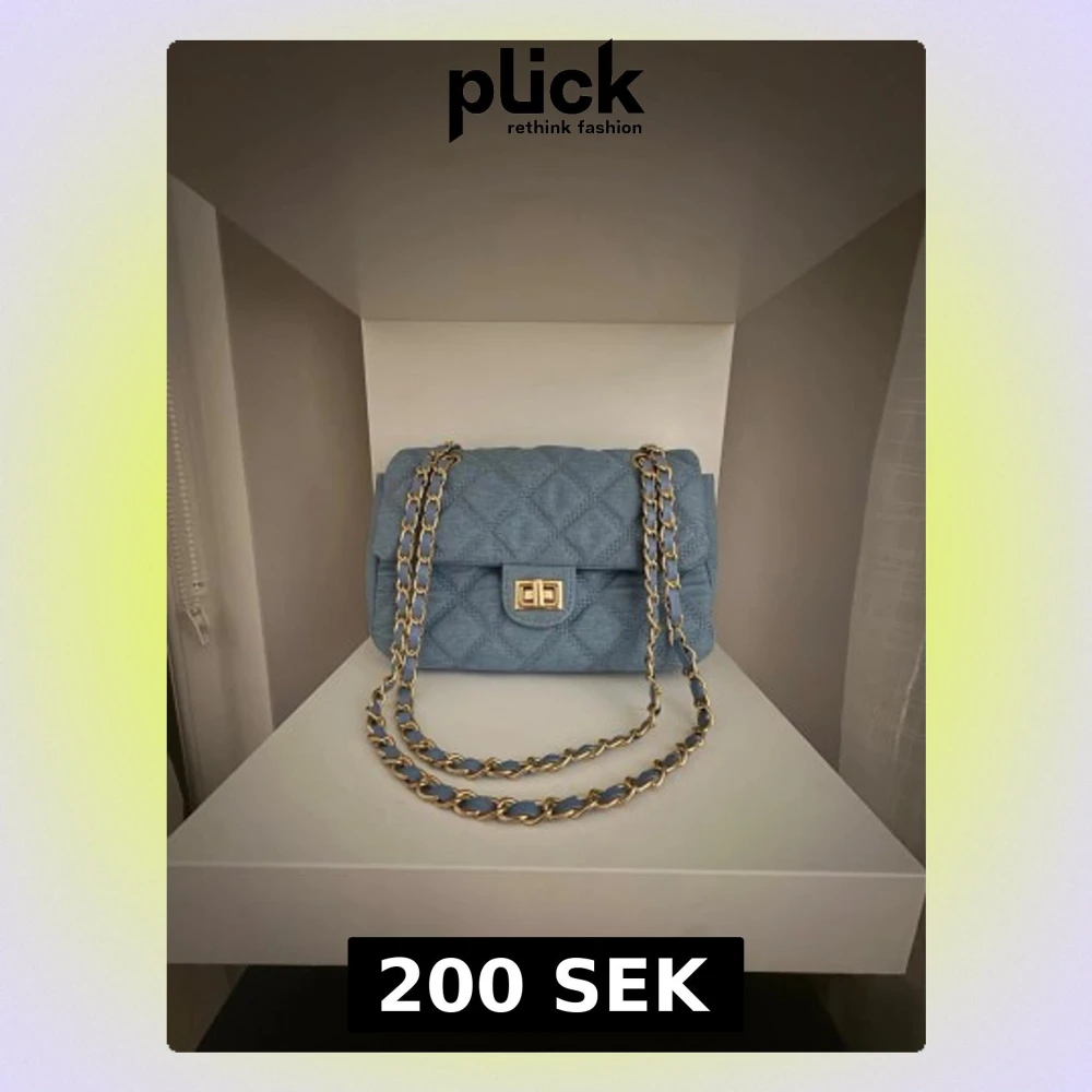 Snygg blå axelväska med quiltat mönster och guldfärgad kedjerem. Väskan har en klassisk rektangulär form och stängs med ett vridlås i guld. Perfekt för dig som vill ha en trendig och stilren accessoar till din outfit.