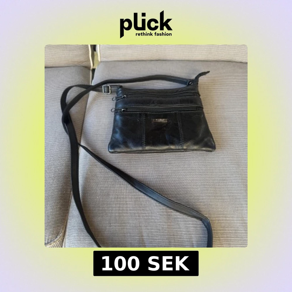 Svart axelväska i skinn från Feel Accessories med två dragkedjefack framtill och justerbar axelrem. Stilren design med metallmärke på framsidan. Perfekt storlek för mobil, plånbok och nycklar.