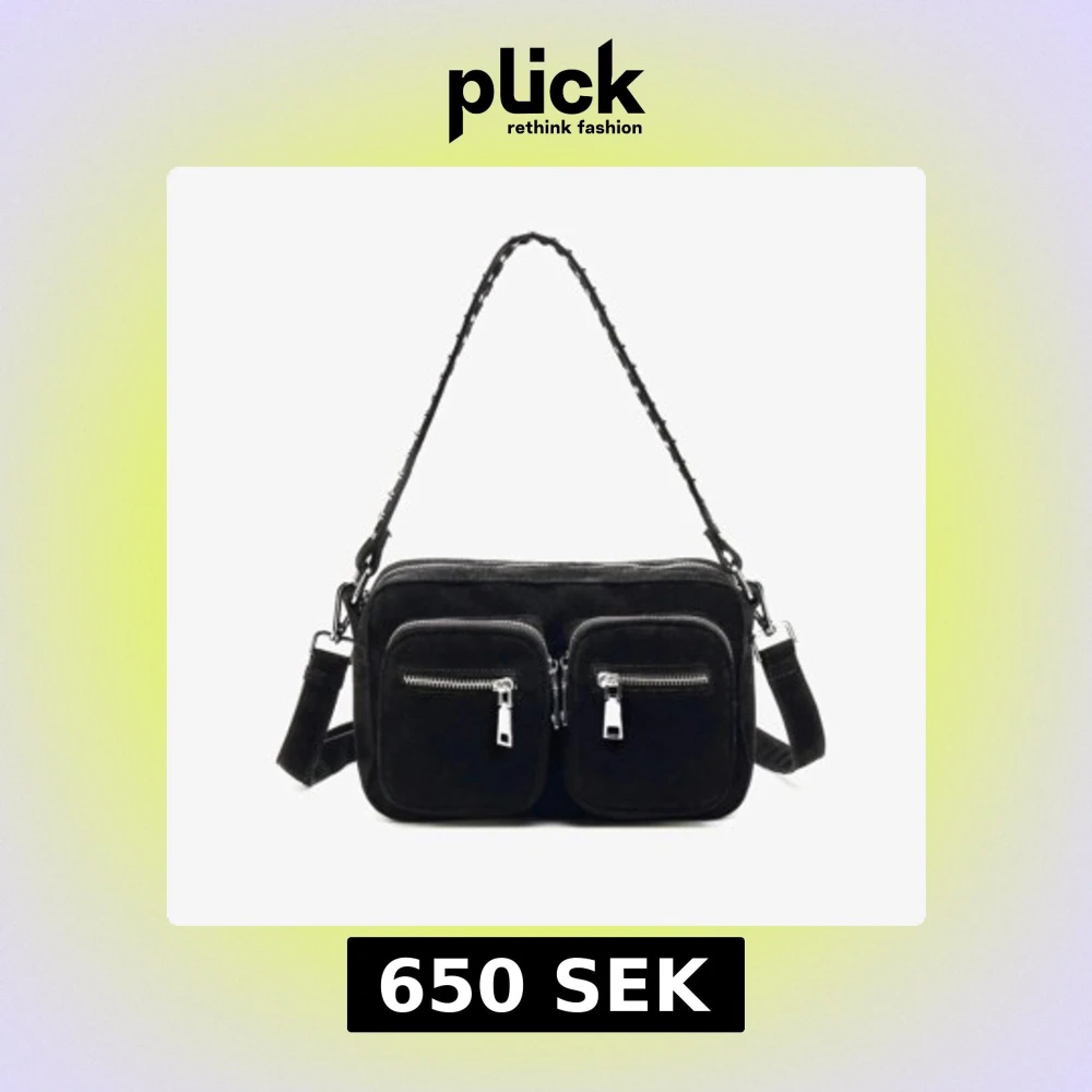 En axelväska i mocka från noelle med två framfickor och silvriga dragkedjor. Väskan kostar som ny 799kr. Väskan har en bred axelrem dekorerad med nitar och extra detaljer i metall. Men får plats med mer än vad man kan tro.