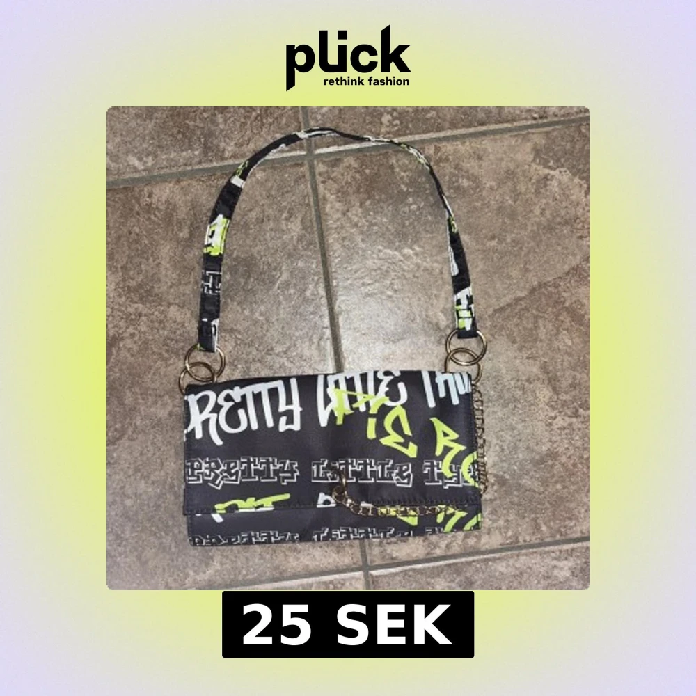 Cool axelväska med graffitimönster i svart, vitt och neongult från PrettyLittleThing. Väskan har en kedjedetalj framtill, tryckt logga och bred axelrem med metallringar. Perfekt för att lyfta din streetstyle.