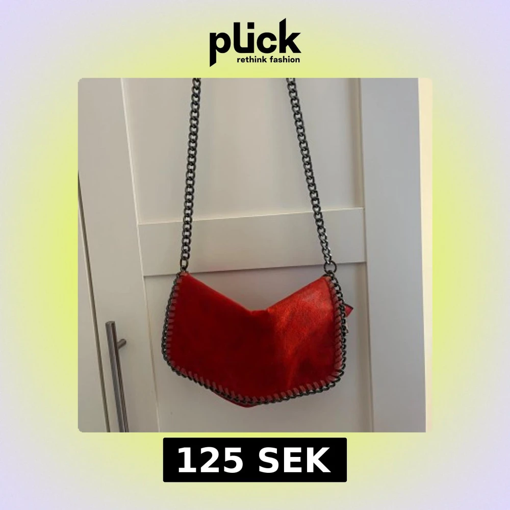 Snygg röd axelväska med kedjedetaljer runt om, köpt i Spanien på en marknad, använd fåtal gånger💕