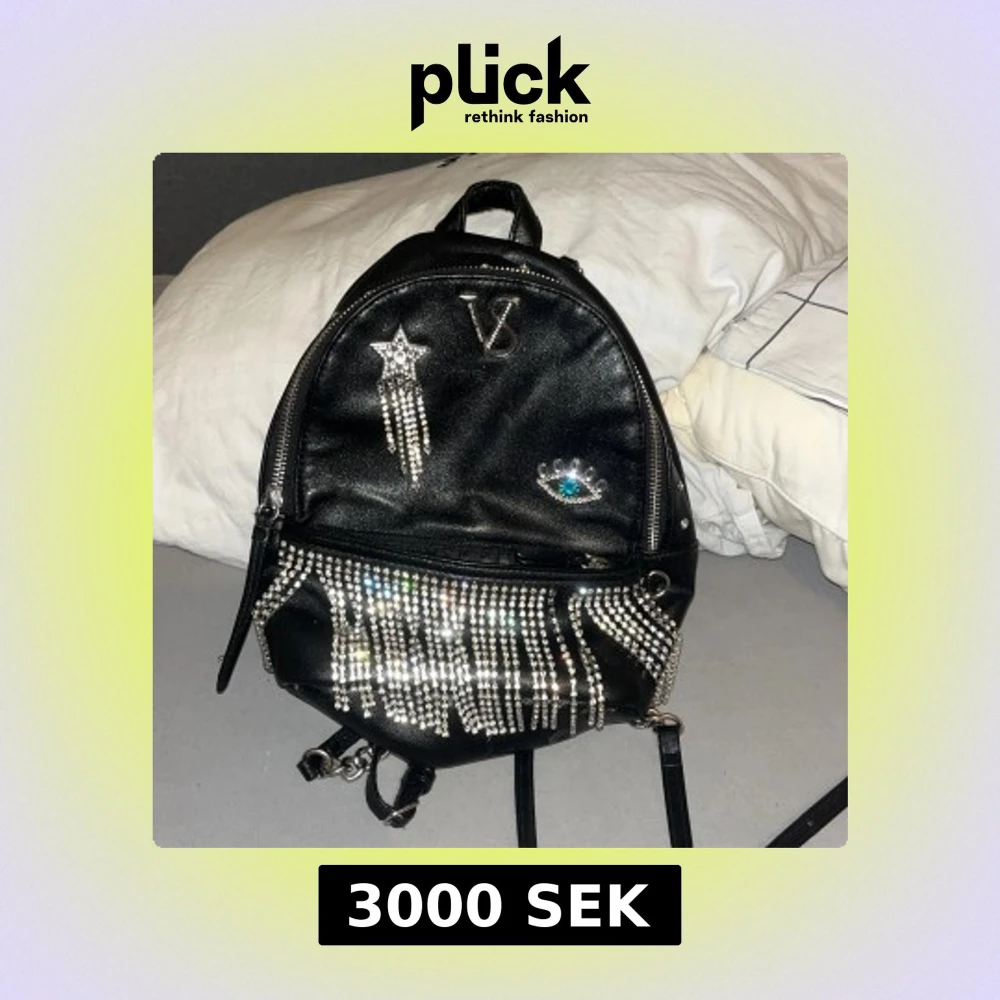 Svart ryggsäck med strassdetaljer från Love Victoria