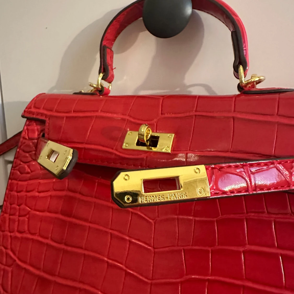 Röd läder handväska