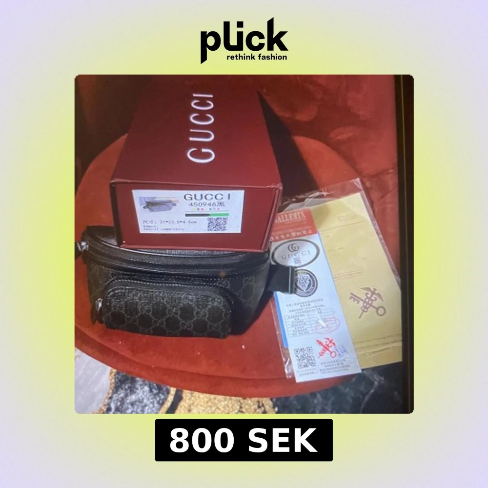 Snygg svart magväska från G med klassiskt GG-mönster och dragkedja. Väskan har en praktisk ficka framtill och justerbart band. Perfekt för att bära det viktigaste med stil och attityd.