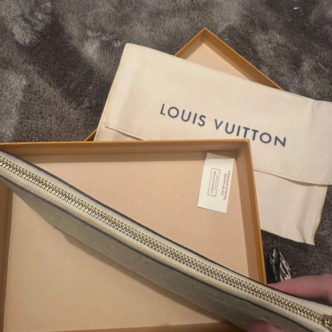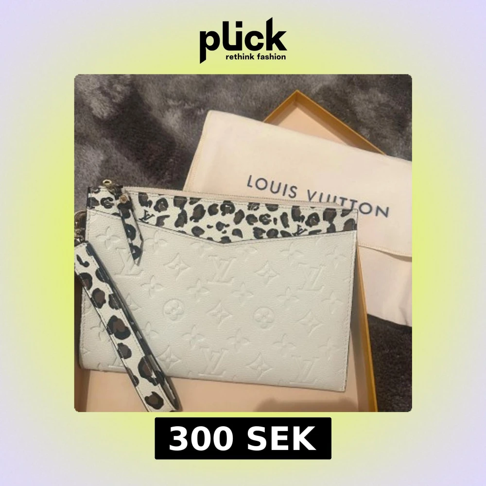 Snygg clutch i vit skinn med coola leoparddetaljer på dragkedja och överkant. Väskan har en avtagbar handledsrem och guldiga metalldetaljer. Perfekt för att lyfta din outfit med lite extra edge.