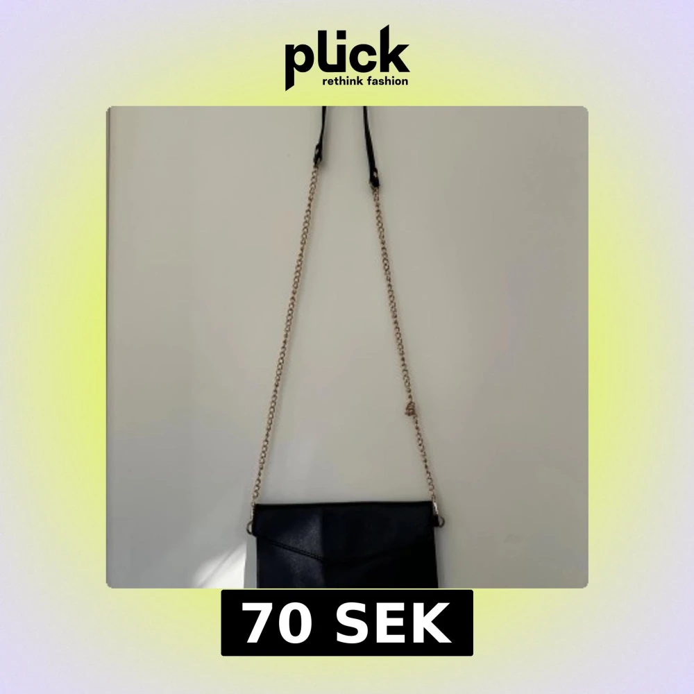 Svart kuvertväska med guldkedja