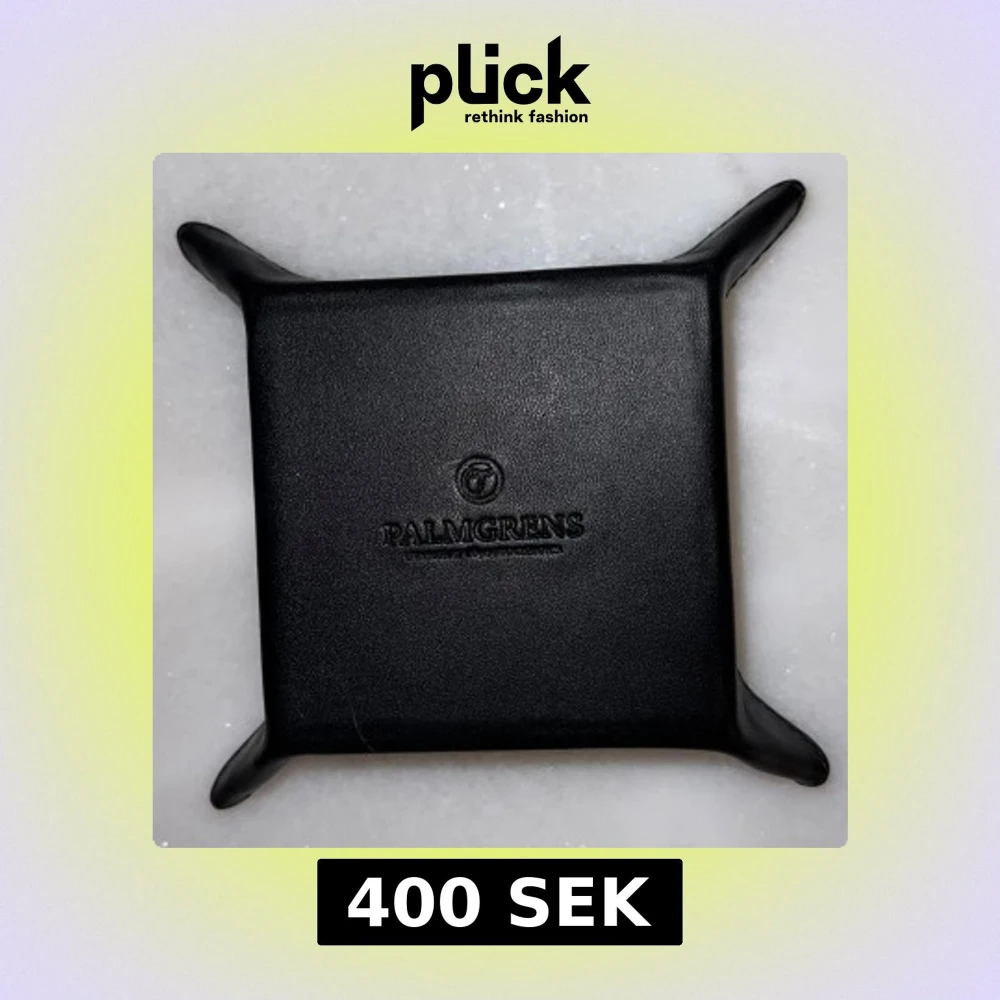 Elegant svart skinnbricka från Palmgrens, perfekt för att organisera småsaker. Den har en stilren design med upphöjda kanter och är tillverkad i högkvalitativt skinn. https://www.palmgrens.se/sv/articles/2.48.247/fat-s